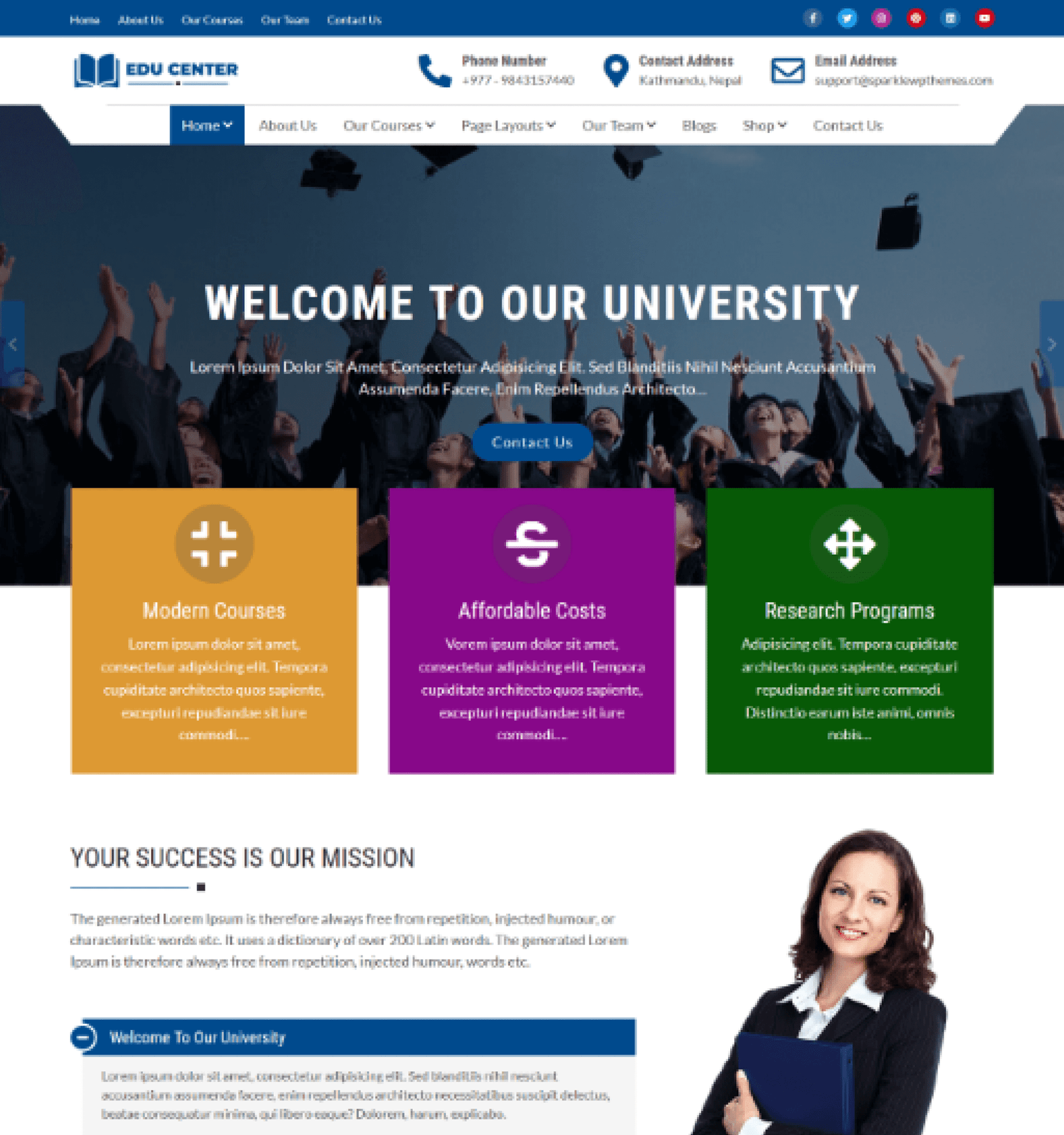 If you face any problem related to our education theme, you can refer to our theme documentation or contact our friendly support team. Check the demo at demos and theme details at theme details and get a free support forum at Support and nice Hosting Services.