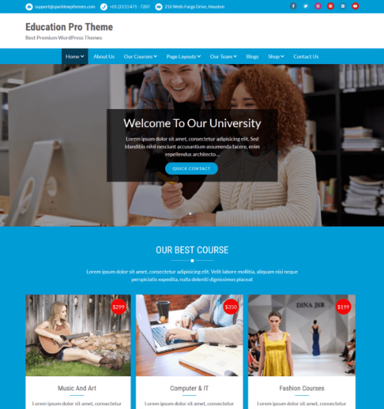 This theme is very easy to use for all types of educational institutions like colleges, universities, institutes, schools, online courses, and different other education-based websites. The theme shows your website within a satisfactory viable way on smartphones, iPhones, tablets, and laptops, as well as large screens.